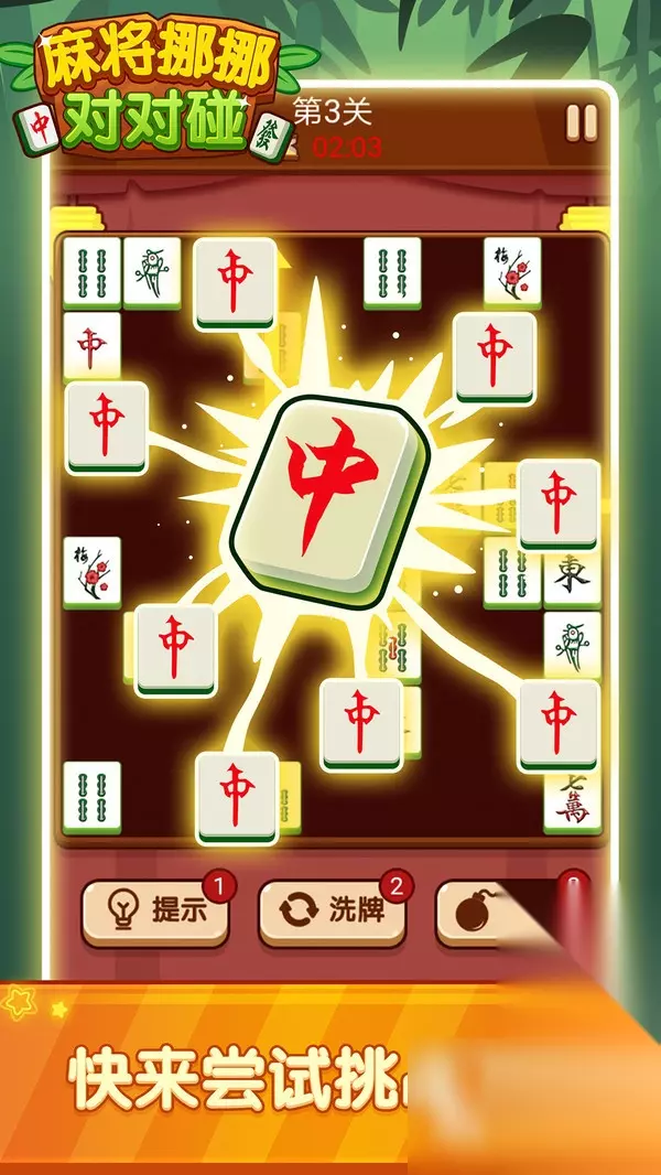 踏入《文字烧脑解谜 - 国风文字对对碰》的世界,领略国风与文字的奇妙交融。游戏中一个个充满韵味的中国文字如同灵动的灵魂,等待着你去发现它们之间的联系。通过对对碰的方式,将相同的文字组合消除,在挑战中真切享受中华文化的渊源精深。解开文字的谜题,每一关都是一次对思维的考验,快来展示自己的智慧和观察力吧! 》》》》》#文字烧脑解谜-国风文字对对碰#《《《《《 2、《疯狂麻将对对碰》