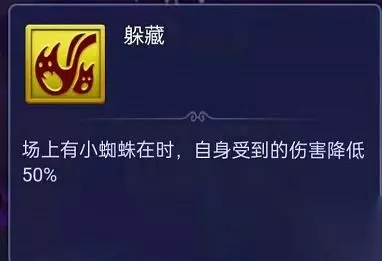怪物特点2: 躲藏,场上有小蜘蛛在时,自身受到的伤害降低50%。