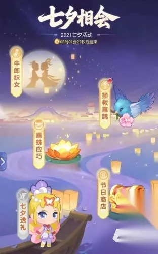 七夕活动开始外测,外测活动分别为:牛郎织女、拯救喜鹊、喜蛛应巧、七夕送礼(未开放)。我们分别来了解一下。