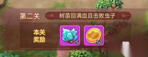 第二关: 树苗回满血且击败虫子。