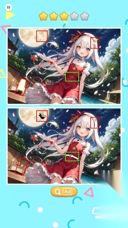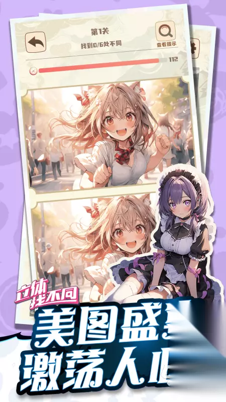 《立体找不同》在主题的设定上破旧立新,通过种种外形悦目神怡的美少女来吸引玩家,除此之外针对关卡的塑造也进行了用心的设计,包含着毫不重复的角色内容以及找茬点,另外游戏还对角色进行了风华绝代的立体效果设计,会随着动态的背景在肢体形态上产生变动,也直线性的影响了找茬的难度。 高速下载 普通下载 优先233乐园APP下载 5、《找不同8000关》