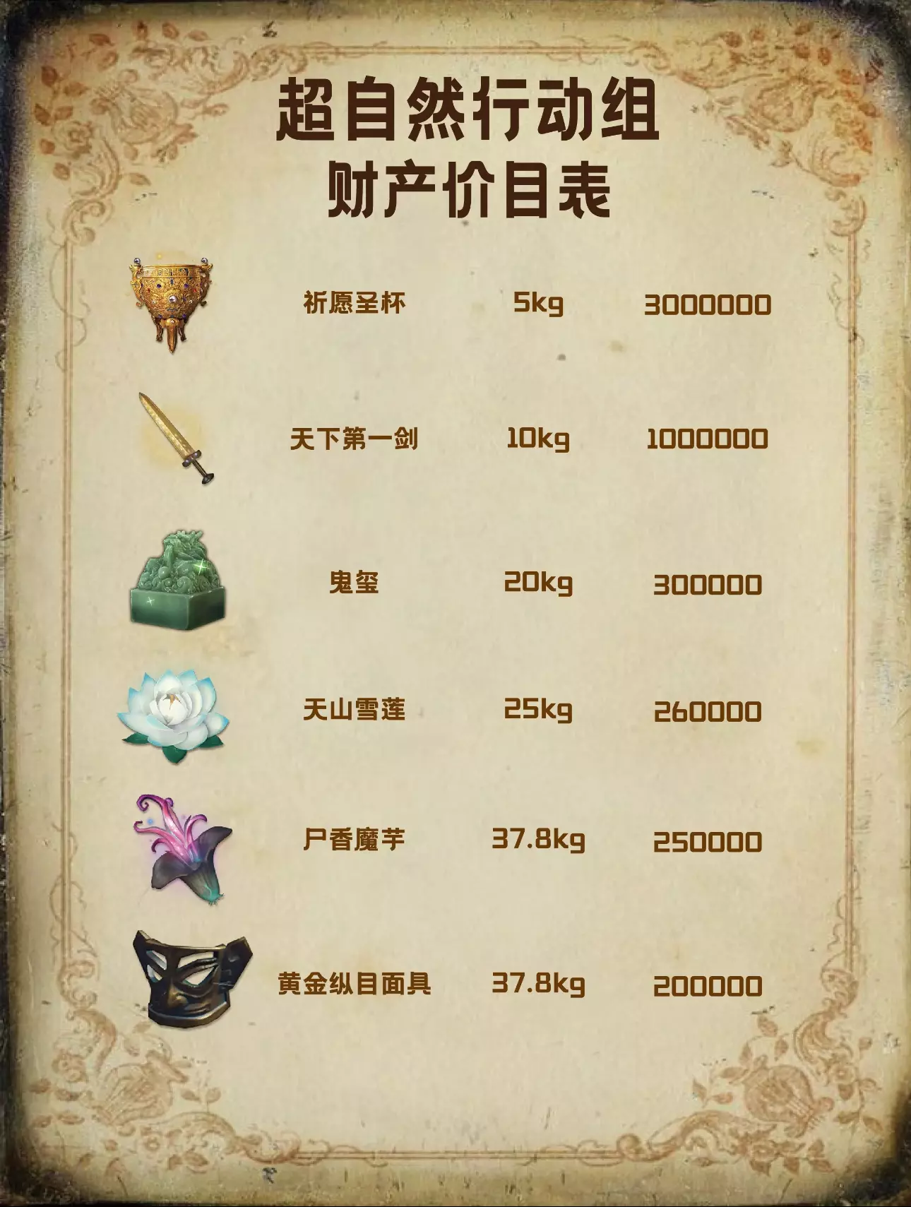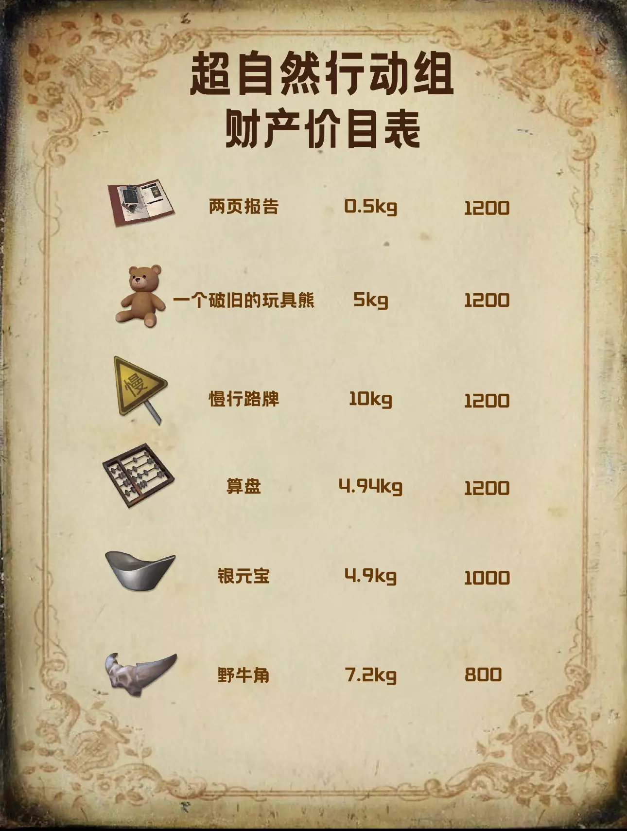 超自然行动最全财产价目表来啦(下)