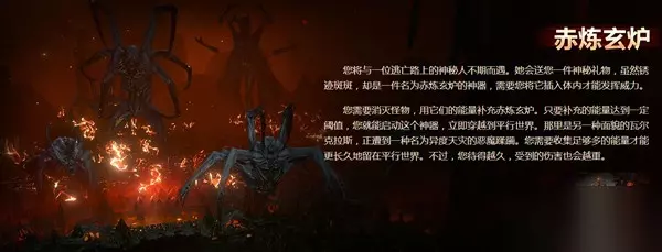 跨越时空壁 当你击败怪物的时候,这件神秘器皿将会吸取怪物的能量,当能量达到一定阈值时,你将能够启动这个神器,并立即跨越到平行世界,那是另一种面貌的瓦尔克拉斯,正遭到一种名为异度天灾的恶魔蹂躏。