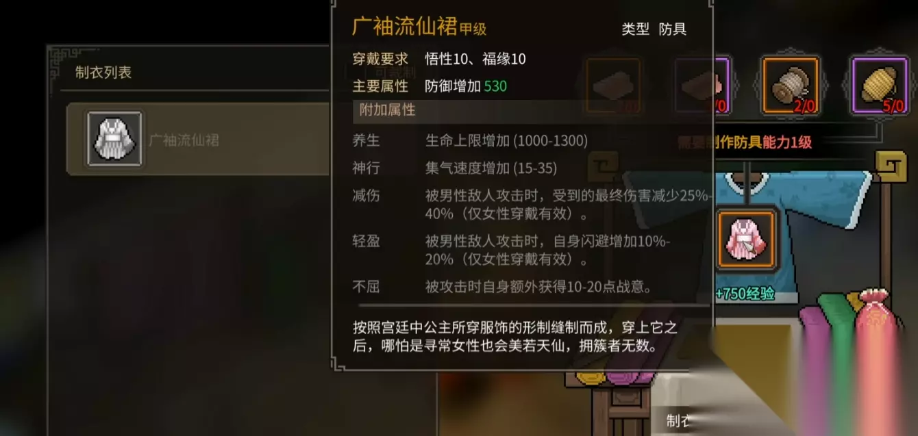大侠立志传广袖流仙裙装备介绍以及这件装备的获取方式就是以上这些了,这件装备对后期需要进一步提升阵容强度的玩家来说很重要,因为主角已经没有太大的提升空间了,就可以考虑收集一下材料把队伍里的其他侠客也强化一下,再去闯荡江湖会变得简单很多。