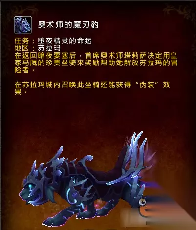 至于奥术师的魔刃豹坐骑,还需要到暗夜要塞开放后才能解锁任务。