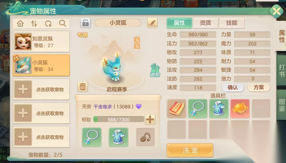 4、然后宠物免费送一只,还有一只首冲给。两只都不错,我看两只都能免费进阶,最终都能进阶到5技能,打起来也感觉还可以,都是群攻挂机前面挂机也很舒服。 当然我看还有神兽,不过这个就没啥说的有钱就搞。还有宠物装备有就穿上包括护符,可以随便拆下来不要钱,所以不用担心。打书也可以选择是否放弃,可以防止顶掉你不想掉的技能,不过前面的宠物基本没必要打书除非是神兽。 别的养成方面感觉也差不多,点点修炼,锻一下宝石,宝石按推荐锻就是了,这两个都是稳定收益,可以搞一下,反正不会亏,不过也可以存钱,把用不上的道具都卖了,前期压力不大,感觉打不过就点点修锻宝石打装备也是,就是修炼丹和用的上宝石尽量别卖。