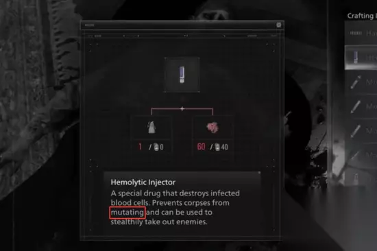 红头丧尸与系列一贯的生存恐怖理念高度契合,但除了一些外传作品之外,它们此后几乎再未登场,而《生化危机9:安魂曲》或许终于要改变这一点。 而在Reddit论坛上有玩家指出,在昨天的发布会上,卡普空详细介绍了全新升级的制作系统,并展示了一种名为“溶血注射器(Hemolytic Injector)”的道具。乍一看这似乎没什么特别,但值得注意的是,这个道具的说明写着“可破坏受感染的血细胞”以及“防止尸体发生变异”。这听起来,真的很像是在针对红头丧尸。