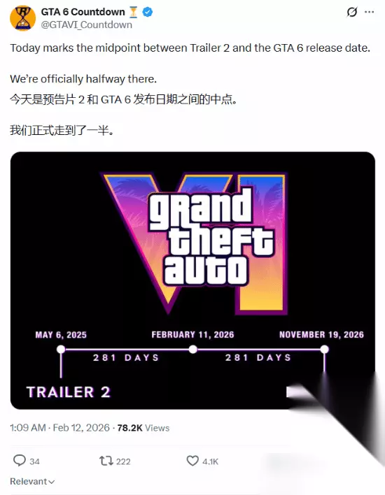 2026年2月11日,GTA6正式迈入发售倒计时的关键阶段——第二支预告片发布之日与最终发售日恰好处于全程中点,意味着漫长的等待已步入后半段,距离游戏正式上市仅余281天。 此后,发售日期调整为2026年11月19日。截至2026年2月11日,第二支预告片发布已满281天,与当前剩余天数完全一致,构成项目推进过程中一个具有象征意义的时间节点。 但其开发历程并非一帆风顺,曾经历两次延期。尽管如此,R星对2026年11月19日这一时间节点展现出明确信心,一定程度上稳定了玩家预期。对比约八年整体开发周期,以及首支预告片发布至今逾两年的等待,当前所剩的281天已显著压缩了期待时长。 随着这一转折点到来,游戏的公开节奏正逐步加快。R星母公司已在最新季度财报中确认,将于2026年夏季正式启动GTA6的全球发售营销,后续数月内将陆续释放新内容与信息。报告同时重申11月19日为最终发售日期,并澄清所谓“首发仅提供数字版本”的说法并不属实。 关于玩家普遍关切的售价问题,目前尚未有官方定论。受行业制作成本持续攀升影响,外界存在GTA6或将突破传统定价、成为首款标价百美元主机大作的推测。然而据知情人士透露,尽管本作极可能创下游戏开发成本新高,但其零售价格大概率仍将维持在既有主流区间内,具体方案有待R星后续正式公布。 截至目前,官方仅释出两支预告片,核心玩法、叙事结构、平台支持等细节仍未公开。但随着夏季营销全面启动,更多实质性信息将陆续浮现,全球玩家对这款作品的了解也将日益深入。