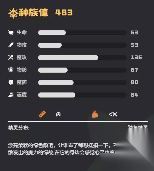 小独角兽魔攻种族值达到136点,位列全游戏魔攻榜第一梯队,速度84点也属于中上水平,适合作为队伍中的法术核心。生命值63点、物防67点、魔防80点的三维属性使其在对抗魔法伤害时表现优异,但需注意规避物理系高爆发敌人。技能搭配也是要注意魔攻或者辅助。小独角兽可以进化为白金独角兽。白金独角兽偏向魔攻,适合魔法输出,强度也同样是非常不错的,颜值也非常高,小编推荐大家必入一只进行培养。