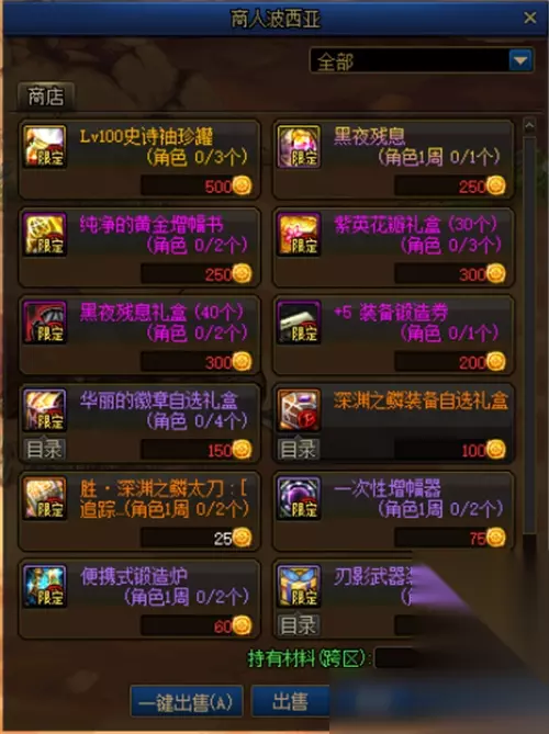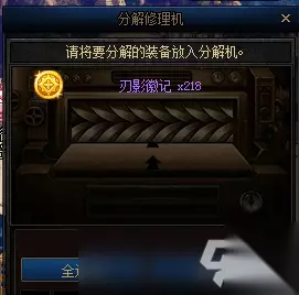 另一个环节则是商店奖励,需要使用材料“刃影徽记”兑换。 “刃影徽记”分解专属装备可以获得, “刃影修炼记”里也会奖励一些。 (专属装备从专属地下城里获取,装备图标上带有B图标)