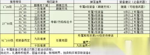 【专属升级手册】 升级路线大致可分为“1~26级、26~90级、90~100级”三个阶段。 以下根据等级区间分别进行归纳。 1-26级 1-20级练级过程为跟随主线练级即可,刃影的主线剧情不错,推荐体验。 20~26级最后一个主线任务结束后,可以在NPC波西亚处接取支线任务,整体上没有什么要特别注意的。 1~26级的装备获取,可通过任务和副本掉落获取,有啥穿啥不用在意属性。