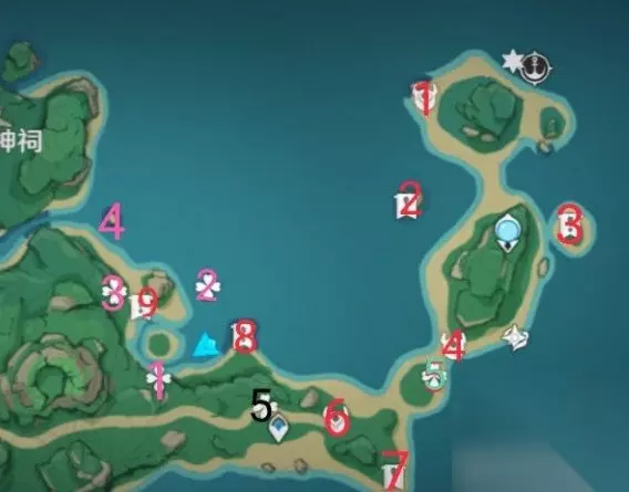 原神2.2版本鹤观岛的全部宝箱位置,以及全部雷神曈的位置在哪里?因为总是会有大雾弥漫难免在锄地的时候找不到需要的内容,那么今天小编就给大家带来了关于鹤观岛中雷神曈和宝箱的全部位置解析,方便大家一次性收集。 原神2.2鹤观岛全宝箱收集攻略 原神2.2版本雷神瞳位置一览 原神2.2鹤观岛全宝箱收集攻略 1、整个鹤观岛位于稻妻地图的最下方,这里的地图被迷雾笼罩,然后具体的宝箱位置已经在下面给大家标注出来了; 2、红色的是宝箱的位置,然后绿色、黑色是仙灵的位置,粉色就是雷灵了;