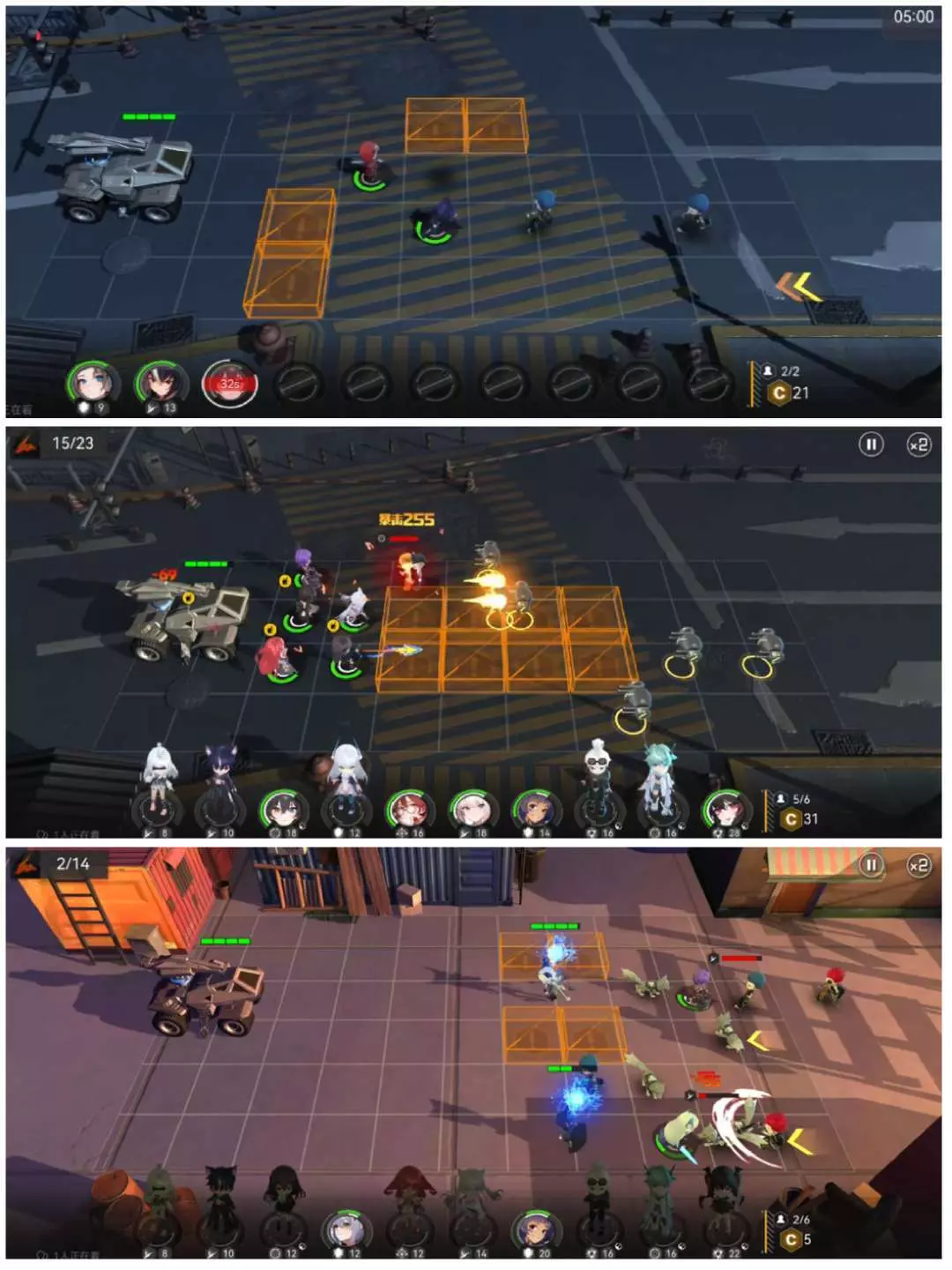 玩法的设计主要是给予一长条的地图空间,会额外放置一个禁止行走的位置,从而让玩家根据自身角色所攻击的范围来决定所摆放的区域,唯一需要保证的就是不让敌人所进行突破防守的位置,摧毁我方的车辆,也要根据克制和相对应可以对于敌人产生攻击的人物进行使用,所以基础表现上也算是拥有可玩性的内容。