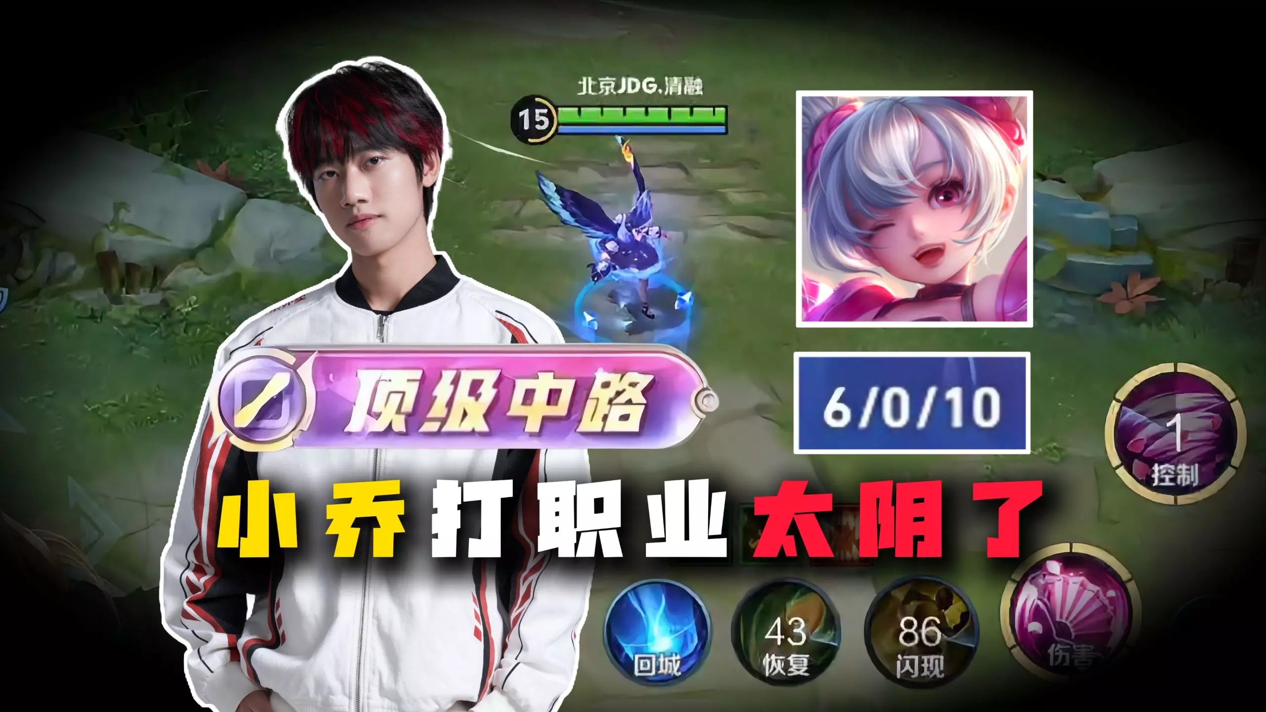 这是王者荣耀职业比赛内容,选手清融使用中单小乔打出6/0/10的全局零失误战绩,精准针对敌方英雄,展现出极强的赛场统治力。