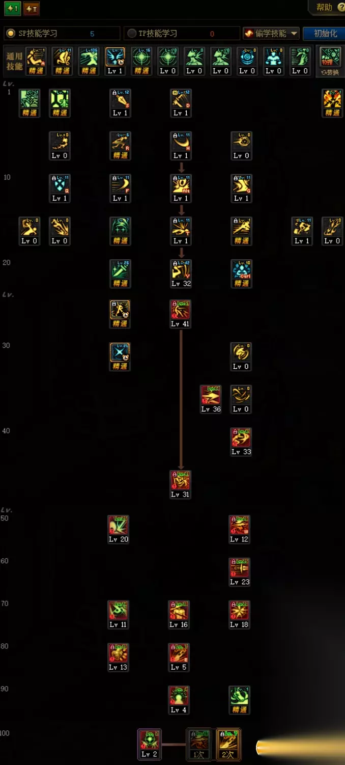 在tp上选择点满主力技能,余下的1sp分配给影袭提高控制能力。
