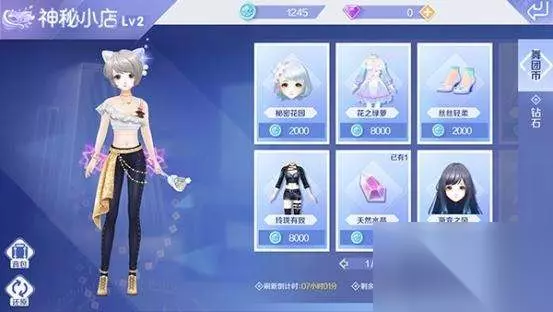 图5:神秘小店 玩家累积的舞团币可以在舞团中的神秘小店中购买服饰道具,不同服饰需要的舞团币数量各不相同。另外舞团神秘小店中的服饰还可以在工坊中进化,进化后的服饰外形将会更加华丽,不过进化需要以相同的服饰作为材料。