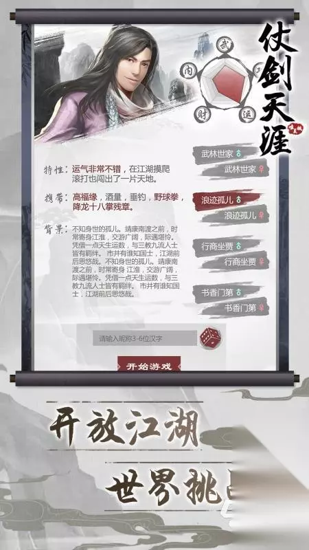 这是一款全新的手游,而且玩法和其他的手游玩法是有所不一样的,这款手游是以文字为主要的玩法,而且是一款怀旧类型的武侠手游,它主要是根据探索不同的任务来开启这个游戏,玩家可以感受到如同小说一般的热血江湖。在游戏里面没有任何的职业限制,也没有等级,是一个完全开放式的经典复古武侠游戏。 高速下载 普通下载 3、《侠客人生》
