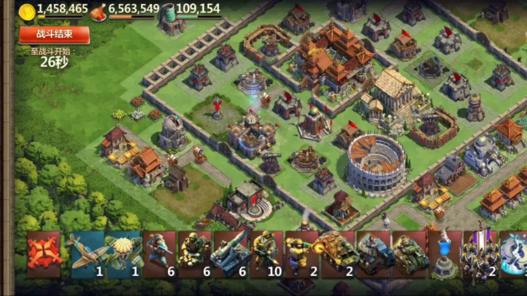 这是《海岛奇兵》的游戏内容展示,呈现了玩家部署西瓜投手部队,攻打敌方基地防御设施的战斗过程,还展示了己方基地的布局,展现了海岛奇兵的基地攻防玩法。