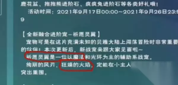 祈愿灵翼是一种以魔法和光环为主的辅助系战宠,将在更新后上,详细的融合路线是: 云鹰+云鹰=1 1+利刃云鹰=2