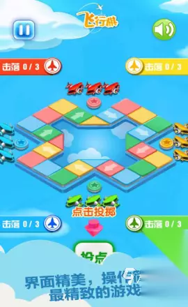 当玩家掷骰子得到六点的时候,就可以让自己的棋子开始启航,棋子将会跳跃到棋盘的第一个格子之上。在游戏进程中,如果自己的棋子和对手的棋子在同一个格子里碰面,并且这个格子不是安全避风港的话,那么就如同在空中发生撞机事件一般,这种情况下,对方的棋子就必须要重新回到起点,这无疑增加了游戏的变数与趣味性。 高速下载 普通下载 优先233乐园APP下载 5、《飞行棋达人》