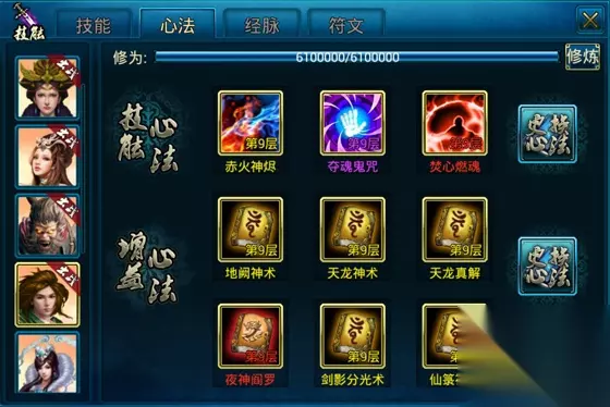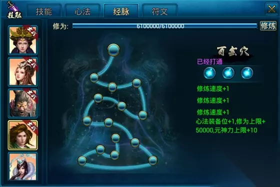 1. 玩家可以为每个散仙配置技能心法,也可以调整技能心法的释放顺序。 2. 增益心法可以进一步加强散仙的人物属性和技能属性,进一步提升战斗力。 3. 散仙的修为可以用来开通穴道及升级心法。开通穴道后可以加快散仙的修炼速度及增加元神上限。 4. 增加元神上限可以让您学会更多高级的心法,增加人物属性及战斗力。 5. 升级心法后可以增加技能伤害及更多的属性增益。