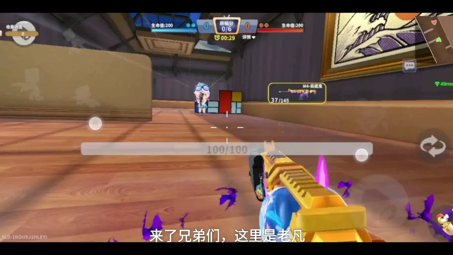 这是《迷你枪战精英》的对战内容,玩家天马使用刚抽出的SCAR-相位蛇影,和玩家两天展开单挑对战,天马采用特殊打法和架点等战术和对方周旋,战况胶着。