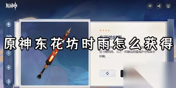 原神全武器图鉴大全 原神东花坊时雨武器介绍 一、东花坊时雨获取方法 四星限定单手剑武器东花坊时雨是原神3.3版本活动参加「秋津森夜试胆会」限时活动并完成任务获得的。 二、东花坊时雨属性介绍 稍微有些特别的油纸伞。尽管长久的旅行中已经习惯风雨,与之一同静赏的雨景或许也有其中妙趣。 攻击命中敌人后,会为命中的一名敌人施加「纸伞作祟」状态,持续10秒。该效果每15秒至多触发一次;持续期间该敌人被击败时,将清除该效果的冷却时间。装备者对处于「纸伞作祟」状态下的敌人造成的伤害提升16%/20%/24%/28%/32%。