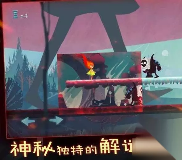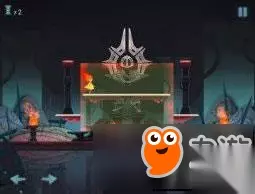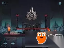 第一关,玩家先左右移动,经过左右两边火炬将其点亮,再点击右边的正方形按钮,是中间出现红色区域,从旁边的阶梯出跳跃上去,到达红色区域阶梯处,将最上面两个灯点亮,按住跳跃,跳过去即可。