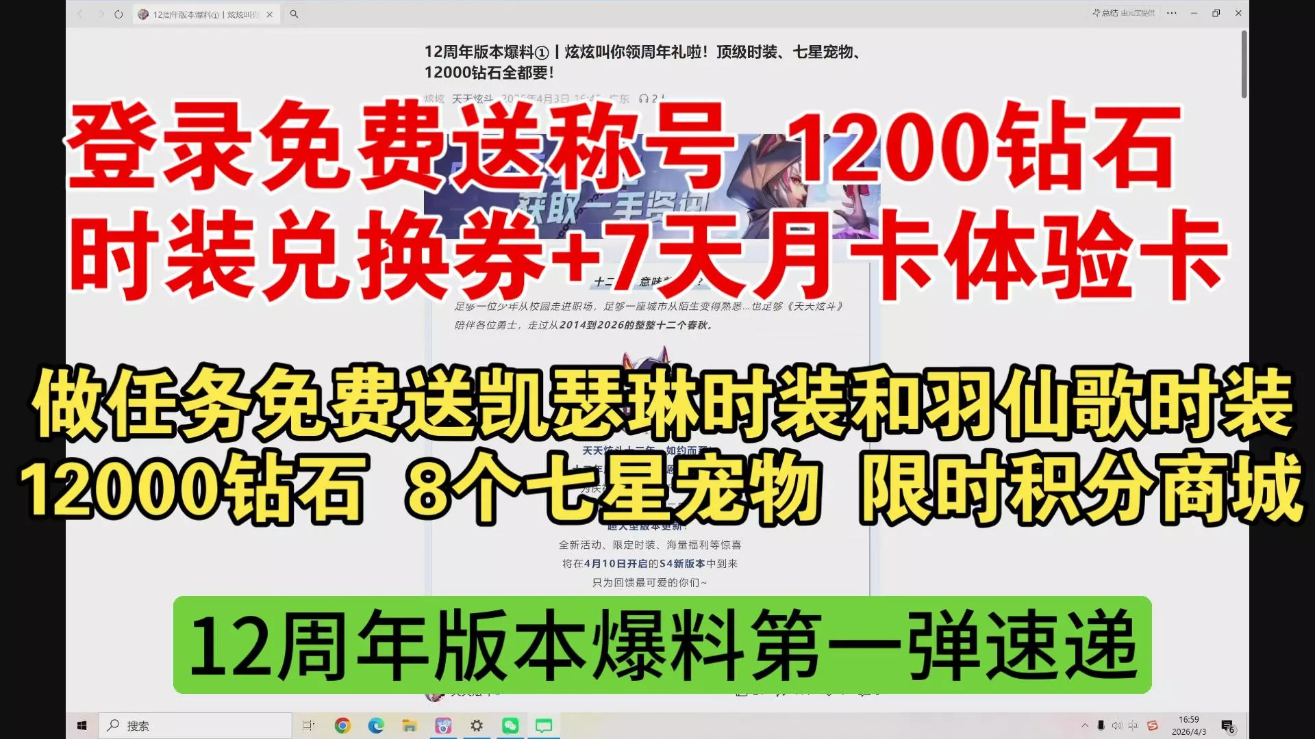 天天炫斗4月10日12周年庆,重磅福利等你来,欢迎各位老炫友回归,也欢迎各位新玩家入坑