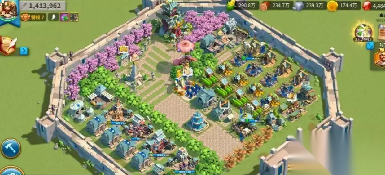 打造一座实用又美观的主城,需要将不同区域进行划分,还要讲究搭配技巧。首先核心思路是分区域规划,可以将资源生产区、军事训练区和核心功能区明确划分。农田、伐木场这类经济建筑可集中布局在城池边缘,按类型排成两列,中间用石板路隔开形成生产走廊,既方便统一升级管理,又能避免杂乱无章。兵营、马厩等军事设施则建议靠近城墙或右侧区域,与学院、铁匠铺构成“军事中枢”,缩短部队调动的路径。