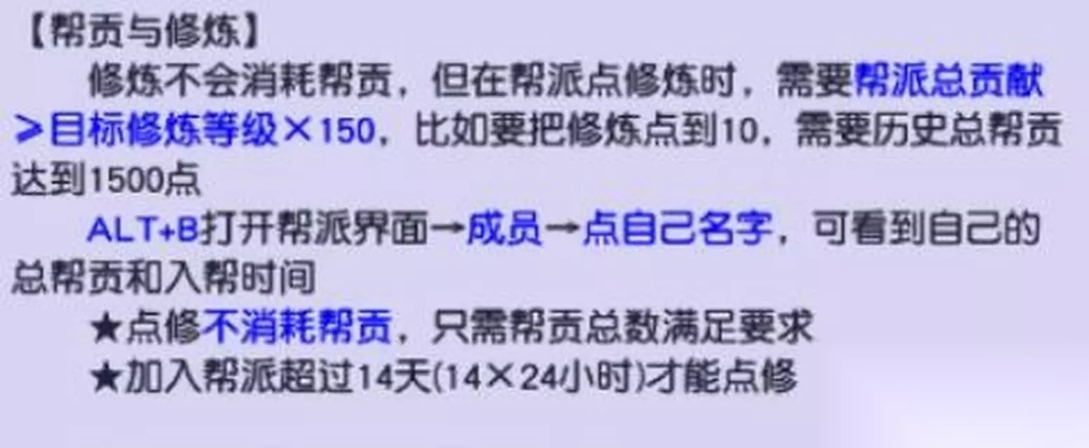 经验分享:如何高效获得帮贡 在了解到帮贡的获取途径和强壮属性的消耗之后,下一步就是如何高效获得帮贡了。 合理规划参与帮派活动 根据个人时间安排,合理规划参与帮会活动的时间,保证活动参与率。 积极贡献,提高帮派等级 积极为帮派做出贡献,比如提供货物、完成建设任务等,有助于帮派等级的提升,高级帮派的帮贡奖励更为丰富。 了解并利用帮派管理功能 熟悉并利用好帮派管理功能,比如“帮派资金管理”和“帮派资材管理”等,可以更高效地获取和使用帮贡。 与其他帮派成员协作 游戏中的协作能够提高任务效率,与其他玩家结伴完成任务,不仅能增进友情,也能让你更快地积累帮贡。 综上所述,想要在梦幻西游中提升强壮属性,必须通过获得并消耗一定数量的帮贡。而帮贡的获取方式多样,合理规划并积极参与帮派活动是关键。通过本文的指导,相信各位玩家能够更加高效地积攒帮贡,并合理地用于角色的属性提升。在梦幻西游的世界里,让您的角色变得更加的强大和完美吧!