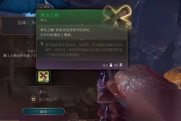 6、故事情节以后,格拉特就会将寒冬之握交给你了,它可以加强冰系的伤害功效。