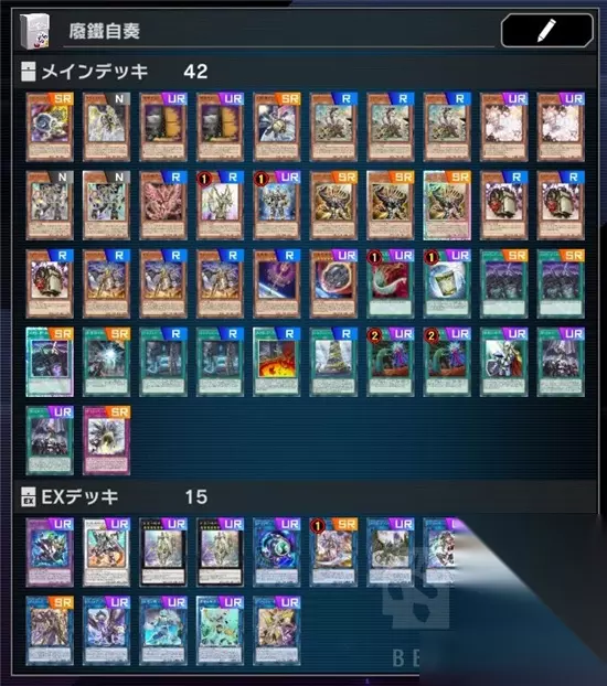 废铁轴: 3废铁盗龙+3废铁回收员 废铁轴的初动点,[废铁盗龙]可以炸自己检索[废铁回收员]或[废铁工厂],并且再提供一次[废铁]怪兽的通召次数。此时再通召[废铁回收员]即可初动。 如果手上同时有[废铁盗龙]和[废铁回收员],那么[废铁盗龙]可以炸自己检索[废铁工厂]。 3废铁石人 下2的原因是避免石人上手,下3则是为了追梦起手[废铁回收员]+[废铁工厂]可以拉出2石人的梦幻起手。 [废铁石人]的效果没有[一回合一次],所以只要反复苏生[废铁石人],就能提供源源不断的LINK值,这也是废铁轴展爆的核心思路之一。 1废铁工厂 虽然工厂上手是好事,但是工厂不能作为初动点,又可以被[废铁盗龙]检索;同时做完场之后必定是通天塔留场,工厂后续毫无作用,因此下1。 当[废铁工厂]和[废铁翼龙]的2效果同时发动时,注意先C1[废铁翼龙]C2[废铁工厂],否则[废铁翼龙]可能会先炸掉[废铁工厂]而导致[废铁工厂]效果不处理。 3废铁区 比较有争议的下法。[废铁区]可以检索[废铁盗龙],增加初动率,但[废铁区]和[废铁盗龙]同时上手就比较尴尬。 下3的原因是骗灰,以及作为[废铁翼龙]的弹药。[废铁翼龙]可以通过炸自己场上的盖卡,来避免只能炸自己的情况。这个后续在[废铁翼龙]那里会讲。 1猎户座飞狮+1水晶机巧红雀晶+1喷气同调士 虽然不是废铁组件,但是是和[废铁回收员]搭配的COMBO志士们,就放在这里一起说了。 猎户座和红雀晶是起到同样效果的组件(场上生1 TOKEN),分别带1是为了不卡1回合1次的效果。 喷气同调士是为了处理上手的自奏组件(比如嬉游曲恶魔和星杖)。 自奏轴: 1嬉游曲恶魔(4星)+2谐谑曲骷髅(3星)+3自奏圣乐·梦幻崩影(7星)+1宵星之骑士·吉尔苏+1星遗物-星杖(8星)+1通天塔(塔) 无需质疑的塔奏组件。 为了方便记忆,我们把自奏圣乐本家的[嬉游曲恶魔]记作[4星],[谐谑曲骷髅]记作[3星],[自奏圣乐·梦幻崩影]记作[7星],[星遗物-星杖]记作[8星]。 [4星]:从墓地除外自己,从卡组特招一张[自奏圣乐]。 [3星]:从墓地除外自己,从墓地特招一张[自奏圣乐](包括2只连接上级和[宵星之机神 丁吉尔苏])。 [7星]:从墓地除外自己,从卡组堆墓一张[自奏圣乐],并为场上一只怪兽+那个星级*100的攻。有时候会利用这个加攻效果A死小米等meta怪。 [8星]:从墓地除外自己,从除外区特招一张[自奏圣乐](包括2只连接上级和[宵星之机神 丁吉尔苏])。 1卡农曲大炮(1星调整) 用来处理上手的自奏组件,同时也可以[卡农曲大炮](1星调整)+[自奏圣乐·梦幻崩影](7星)同调[装弹枪管狞猛龙]。 2自奏圣乐的主音 丢1抽2,合格的过牌手段,处理废件的同时抽卡。上手了也可以当做[废铁翼龙]的弹药。 1自奏圣乐之阶 可下可不下。第一轮妹妹必定检索[通天塔],想检索反击只能等第二轮起步,而盖下去的那回合又无法发动,很尴尬的地位。但一旦拖入BEAT环节会有很强力的效果。 额外卡组: 神影依 米德拉什:选用组件。用[捕食植物 青锁龙森蚺]2效果堆墓[简易融合]出。回合结束时使用[宵星之机神 丁吉尔苏]代破即可保住小米。 装弹枪管狞猛龙:选用组件。可以用[卡农曲大炮](1星调整)+[自奏圣乐·梦幻崩影](7星)出,也可以用[废铁盗龙](4星调整)+任意4星出。 宵星之机神 丁吉尔苏:下2不解释。 链接栗子球:选用组件。单吉尔苏上手时的展开辅助。可以不下。 自奏圣乐 伽拉忒亚:限1。自奏轴重要展开点。 废铁翼龙:下1~2。废铁轴重要展开点。2效果发动之后,必定要选择炸场上1张卡,一般是炸[废铁工厂]或者自己盖放的盖卡,否则只能含泪把自己给炸了。 I:P伪装舞会莱娜:下1。很少有LINK卡组能离开IP。在自奏这里,一般用来发动加速LINK以躲避自奏的[暗属性自肃]。 捕食植物 青锁龙森蚺:选用组件。配合[简易融合]出[神影依 米德拉什]用。 星键士 利娃:选用组件。废铁轴的展开流程之一,能够额外提供2个LINK值,配合[星遗物的继承者]使用。 自奏圣乐 朗吉尔苏:下1。妹妹之外的回收除外区的[自奏圣乐]的重要手段,在拖入BEAT环节后能够大量回收卡片形成持续压制。 梦幻崩影 狮鹫:下1。废铁轴的终端之一,重要的回合外压制。能够出在[双穹之骑士 阿斯特拉姆]或[废铁翼龙]下面,可以不提供任何通敌箭头。 双穹之骑士 阿斯特拉姆:下1。废铁轴的终端之一,用IP作素材成为不成为对象、不被破坏、战斗必胜、自带嘲讽、离场还能稳定带走1个的超级大哥,也用来后手突破一些高攻抗性怪。 访问码语者:下1。暗属性不会吃到自奏的自肃,强大的终结能力在拖入BEAT环节时是毫无疑问的大哥。 召命之神弓-阿波罗萨:下1。废铁轴的终端之一,强大的回合外阻抗能力,并且可以被[自奏圣乐·梦幻崩影](7星)进行+攻达成额外1康的效果。我为什么会优先选做狮鹫而不是神弓,是因为我更偏好不许对手发动效果(比如源数4兄弟直接集体吃瘪);但神弓更能针对那些从手卡发动的效果,而且不怕对面突然掏出一个LINK。这之间就权看个人取舍了。 梦幻崩影 独角兽:选用组件。暗属性不吃自肃。抽到了就可以往里塞。 装弹枪管龙/刺刀枪管龙:选用组件。暗属性不吃自肃。抽到了就可以往里塞。 二、卡组特色 [废铁轴]负责展爆,[自奏轴]负责beat,任何一方通过就可以将战局导向更适合己方的节奏。 [废铁轴]能够在自奏的[暗属性自肃]之前大量展开,所以相较于传统塔奏(以IP拓扑蛇为主的思路)能够携带更多非暗属性的大哥进行压场。 [废铁轴]