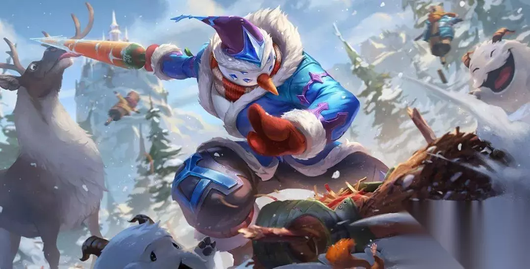 冰雪节系列推荐 持胡萝卜的雪人 易 原价返场:7900点券说实话剑圣这款皮肤其实蛮不错的,回城特效很好玩,武器变成胡萝卜,攻击音效比较清脆,Q技能特效一般,W技能特效比较漂亮,E技能开启之后武器上会有结冰,然后攻击的音效也会发生变化,R技能开启开启瞬间会炸出雪花,跑动时会有雪花在身后飞舞,相比剑圣其它皮肤,这款皮肤其实蛮有创意的,价格也是正常的T3皮肤价格,算是挺有特点的一款皮肤。