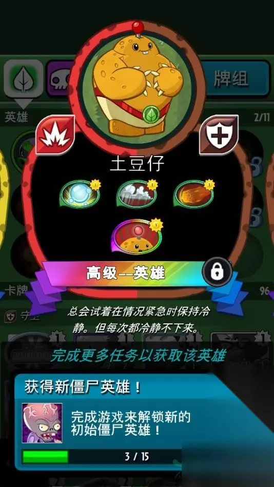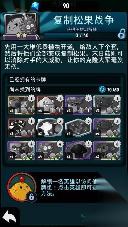 想要在战役中抑制僵点子教授的才能,玩家的英豪引荐挑选马铃薯仔。该英豪在才能上归于防护类型的,战役中能够运用自己的技术和锦囊牌来防护对面的进攻。当然除了做好防护之外,玩家的进攻方面也需求做好猪呢比。 所以在卡组的挑选上主张我们调配“仿制松果战役”这套卡组。在才能上尽管说局面的时分不是很强, 可是中阶段和后阶段能够运用松果来进行植物的仿制。有了很多仿制植物之后,战役才能方面就无须忧虑了。假如后期对方呼唤高档僵尸的话,玩家还能够运用末日蘑菇来进行秒杀,能够有用的协助玩家处理掉这些要挟。