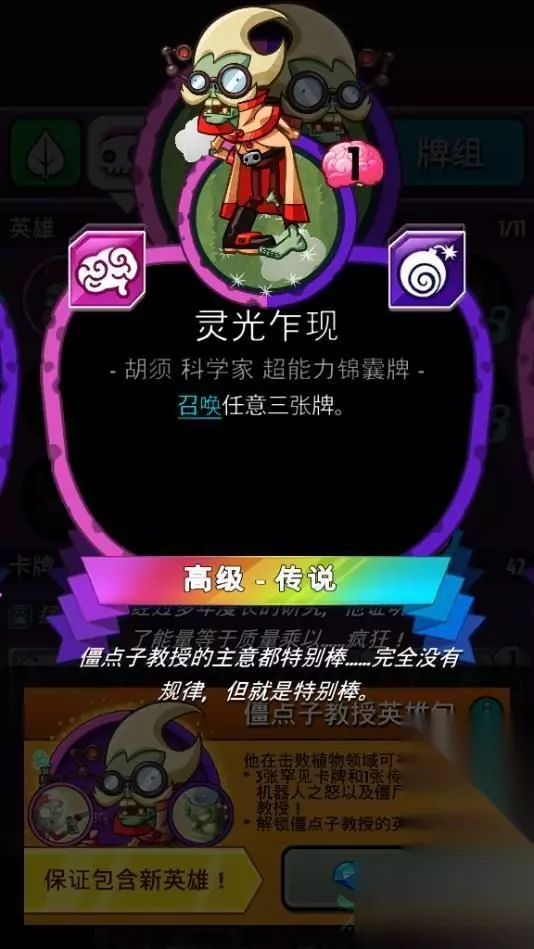僵点子教授英豪在才能上比较倾向于呼唤,战役中能够运用呼唤技术来取得战役的单位。“呼唤术”技术在运用之后能够呼唤一只花费不超越2点脑花的单位,在局面的时分运用仍是能够带来必定局面优势的。当有了优势之后运用“心灵感应”又能够持续抽两张卡牌,有必定的几率能够取得高档卡牌的奖赏。