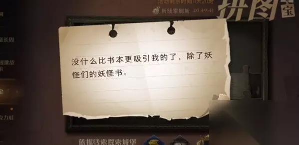 寻宝攻略 线索:没什么比书本更吸引我的了,除了妖怪们的妖怪书。 位置: