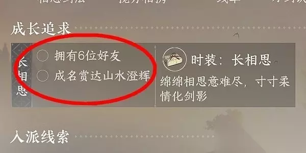 逆水寒手游相思门衣服怎么拿? 一、随机地点,锁定一位好友使用风摇筝技能,完成后根据接下来的指引进入门派。 二、相思门——月下红线获取、前往杭州(1159.1096)在兰朔附近触发传闻奇遇杭城一梦故事中,然后前往(976.1055)与江边草对话完成指引任务即获得。 三、长相思时装条件—— 1、拥有六位好友。 2、打一个团队副本可以选单人与人机打比较容易通过,完成点击左上角人物头像点击总评成名赏领取。