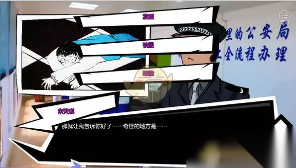 第四章青春的颜色攻略 出示【恒水中学的作息时间表】 移动到公安局 和徐浦雯对话 ——出示【针孔摄像头】 ——雇佣与被雇佣 ——预知胡刚的死亡地点 ——出示【胡刚的手机】 ——煽动胡刚去烧考卷 ——出示【徐浦雯】 ——胡刚在大火燃烧前就死了 ——被人用钝器击打致死 移动——地下室 移动——大门 移动——宪兵司令部 移动进宪兵司令部 调查: ①地上的涂鸦 ②墙壁 移动——密室 调查: ①猫 ——引导 调查: ①垫子 ②梯子 ——地下 调查: ①左边第一个门 调查: ①病历单 ②枪 ③地上的铁盒,此时没密码 调查: ①右边第一个门 调查: ②旗子 ③四封信【观察名字,记住一个女孩的名字】 回左边第一个房间 调查: ①地上的铁盒 输入密码【SAKURA】 回右边第一个房间 对旗子使用碘酒 调查: ①旗子 记住图案 调查: ①右边第二个房间 调查: ①地上的纸 ——莫尔斯电报码表 ——对左数第二个莲蓬头使用步枪 调查: ①左边第二个房间 调查: ①信封 ②化学药品 ③白骨 ④照片 此处密码 可选择放弃 【参考摩斯密码拼出hon,把手往上代表杠,往下代表点】 ——出示【何米娜的证言】 调查: ①发电机 ②油桶 ③软管 ④铁门 ——点击地下的洞 ——手机信号差 ——焚化设备 ——点击【天花板】 ——出示【曹建军】 ——出示【灭火器】 ——点击【学生宿舍】 ——追求梦想 ——早恋 ——追求自由 ——点击老鼠【在画面右边,比较小,要仔细看】 连环逆袭: ——宪兵司令部 ——杀了胡刚 ——点击【铅球】 ——否 ——董静雪案件 ——出示【皮卡丘】 ——夜光涂料的画
