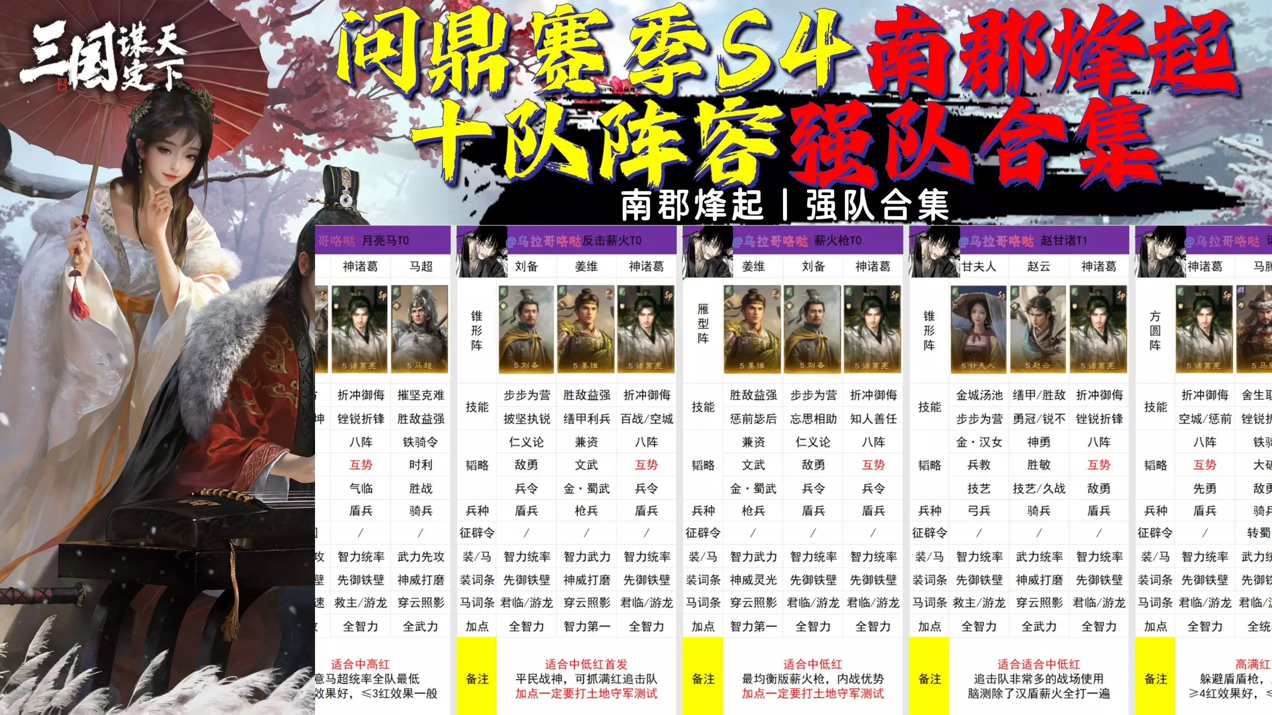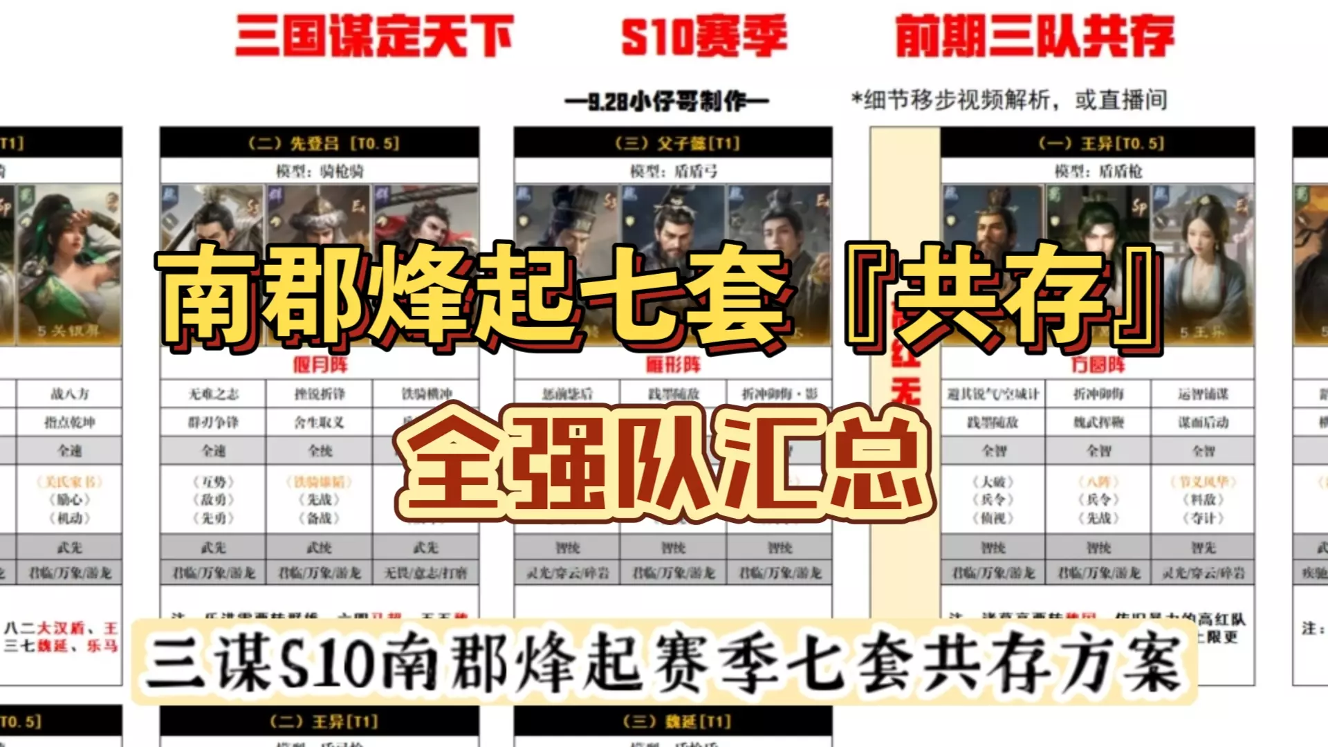 首发队推荐、全赛季强队合集、五队共存、开荒攻略、演武武将强度、武将价值、战法价值、装备词条、都在里面,持续更新