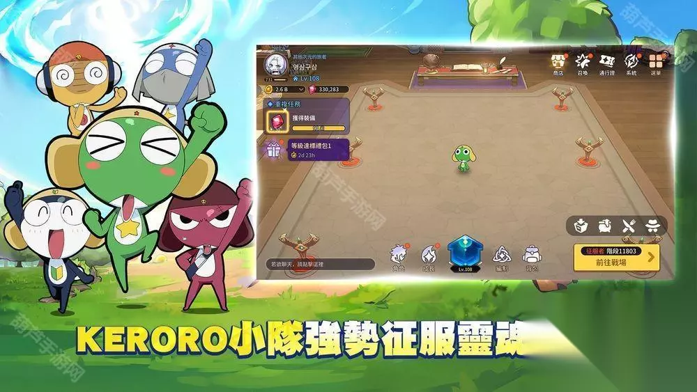 此外,动画中传说级技能「启示录攻击 1 兆分之 1」也将以神话级技能身分重磅登场,搭配全新联名文物「K 隆球」,带来前所未有的战斗震撼与收藏乐趣。 还有超丰富活动等你挑战!透过击退怪物、召唤装备、挑战副本,完成阶段任务累积点数,兑换联名同伴、技能与文物。活动期间每日登入即可在 14 天签到活动中免费获得 Keroro、Tamama 及丰富资源,完成指定成长任务还有机会参加联名成长竞赛,赢取「Keroro 军曹同伴选择召唤券」等珍稀道具。