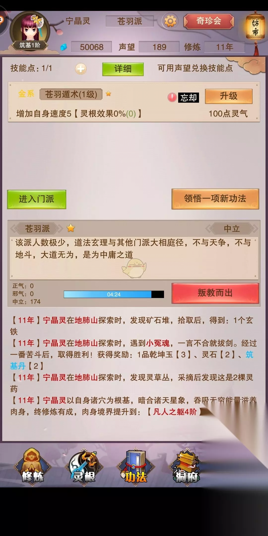 1、技能分类: 心法加防御(防御为王) 决加攻击 遁术加速度(昆仑寻龙会用到), 身法加躲避 真经加雷抗(昆仑寻龙会用到),用处暂时不大。 绝学加修为(不是所有门派都有秘诀) 2、技能学习优先顺序: 心法-决-身法-遁术-真经