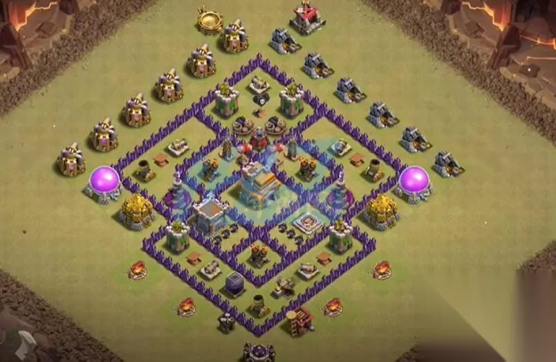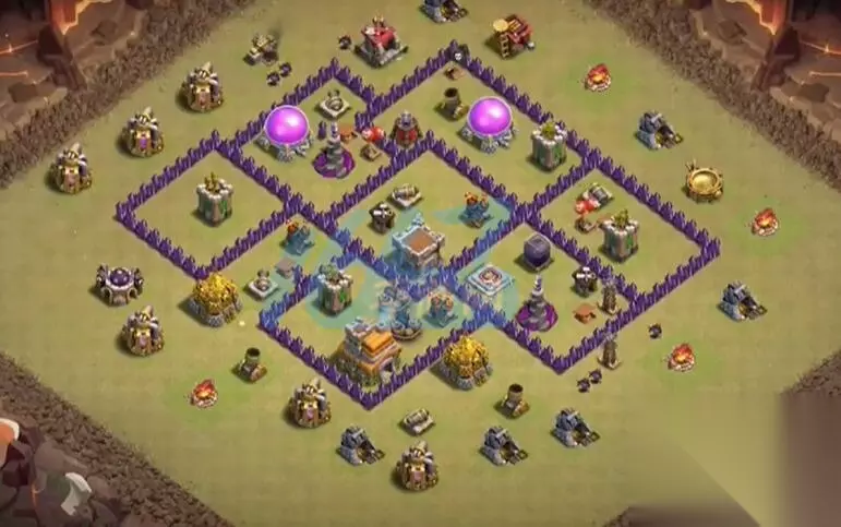 部落冲突最强布阵大全 部落冲突七本公认神阵2023 阵容一 解析:每个区域都分开,更好进行保护。
