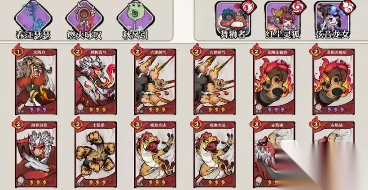 防御位用【舞狮者】,生存扎实,稳定给敌人挂灼烧。专属卡牌“炎阳劲”、真气技都可以在承伤的同时补充灼烧层数,让红尘灵狐后续的引爆威力更强。如果是偏向于自残或者其他特殊流派,可以考虑用炎刀修罗替换。