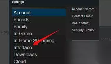 上古卷轴5如何设置中文 1、首先登陆账号,点击客户端的左上角的steam。 2、然后在其菜单中点击setting,中文为设置的意思。 3、然后再setting中选择左边的工具栏 interface选项,中文为:界面。