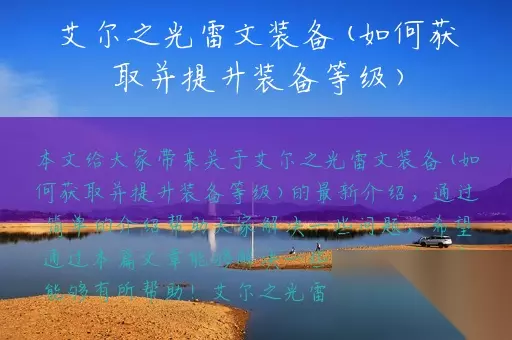 一、获取艾尔之光雷文装备的方式 1. 通过游戏副本获取 在游戏中,有很多副本可以掉落艾尔之光雷文装备,例如“奥兹玛神殿”、“天空之塔”等。这些副本难度较高,需要玩家组队协作才能通关,但是通关后可以获得非常丰厚的奖励,包括艾尔之光雷文装备。 2. 通过商城购买 在游戏商城中,也可以使用游戏币或者真实货币购买艾尔之光雷文装备。虽然这种方式比较简单,但是需要花费一定的金钱。 3. 通过游戏活动获取 在游戏中,经常会有各种活动,例如节日活动、周年庆典等,这些活动通常会有艾尔之光雷文装备作为奖励。玩家可以通过参加这些活动来获取装备。 二、提升艾尔之光雷文装备等级的方法 1. 使用装备强化石 装备强化石是一种可以提升装备等级的道具,可以通过游戏商城或者游戏中的各种活动获取。使用装备强化石可以提升装备的基础属性和附加属性,使得装备更加强大。 2. 使用装备升星石 装备升星石是一种可以提升装备品质的道具,可以通过游戏商城或者游戏中的各种活动获取。使用装备升星石可以将装备的品质提升到更高级别,从而提升装备的基础属性和附加属性。 3. 使用装备进化石 装备进化石是一种可以将低级装备进化为高级装备的道具,可以通过游戏商城或者游戏中的各种活动获取。使用装备进化石可以将低级的艾尔之光雷文装备进化为高级的装备,从而提升装备的基础属性和附加属性。 三、总结 艾尔之光雷文装备是《艾尔之光》游戏中非常强大的装备,可以极大地提升玩家的战斗力。玩家可以通过游戏副本、商城购买、游戏活动等方式获取装备,并且可以通过使用装备强化石、装备升星石、装备进化石等道具来提升装备等级。希望本文对玩家们了解艾尔之光雷文装备有所帮助。
