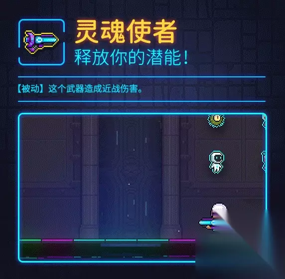 武器名:灵魂使者 官方介绍:释放你的潜能! 被动技能:武器造成的伤害视为近战伤害 获取方式:深渊中有概率获得