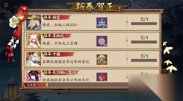 很多小伙伴在玩阴阳师这款游戏的时候,还不知道新春贺正拜年任务如何完成,其实它是有四个不同的任务需要完成的,那么具体如何完成呢?下面就由小编来为大家介绍一下吧。
