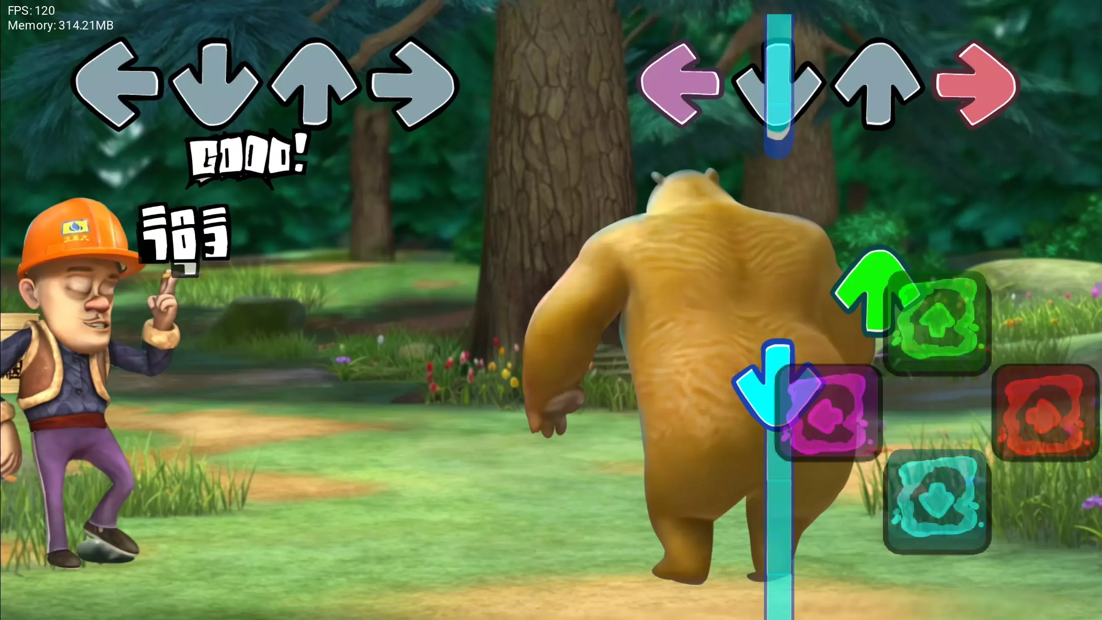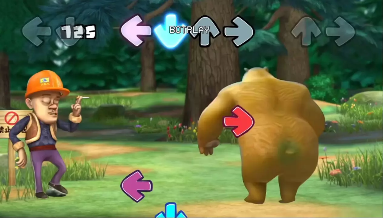 这是一个将光头强与周五夜放克结合的整活内容,通过对比画面呈现出对周五夜放克的极致模仿,把光头强的神态动作和周五夜放克的游戏元素进行趣味结合,带来搞笑的二次创作效果。