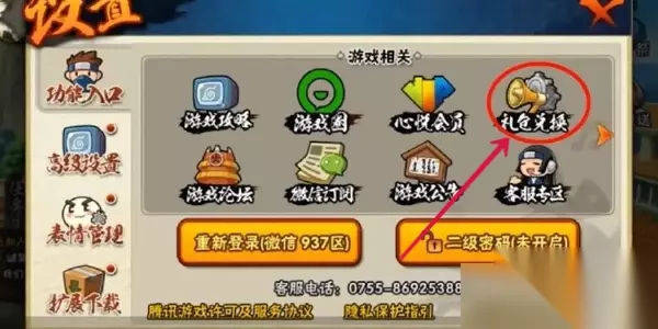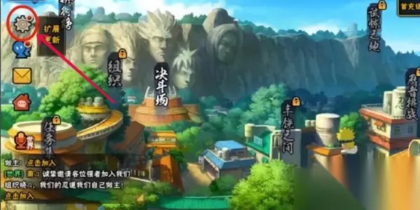 游戏内兑换 1、首先登录进入火影忍者手游,在游戏的主页面点击左上角的设置图标,如下图所示;